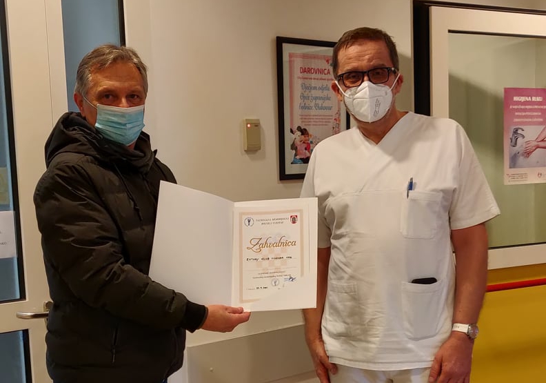 30.12.2021. posjetili smo Odjel pedijatrije Nacionalne memorijalne bolnice Vukovar te smo voditelju odjela dr. Davoru Bandiću uručili prigodne poklon paketiće za male pacijente pedijatrije. Tom prilikom, dr. Bandić je našem klubu uručio Zahvalnicu, na što smo posebno ponosni te smo izrazili želju da naše buduće aktivnosti budu usmjerene i prema Odjelu pedijatrije.